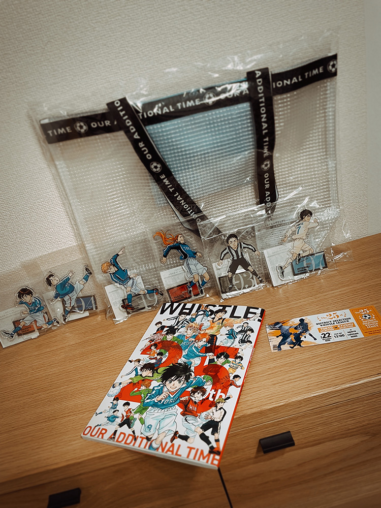 ホイッス〜原画展行ったよ日記 人がいたからモザイク 来週以降行くつもりだったけどどーーーしても行きたくなって行ってきた! 雨の中! 〜入場まで〜 16時ちょい前に行った。会場はすごいこじんまりしたギャラリー。このとき誰も並んでなかった。中入って地下に降りて整理券もらう。 整理券のQRコード読んだら今現在の呼出番号表示されて自分の番号まであと何分って待ち時間が出る。数時間待つかなって思ってたけど40分弱だったからその辺で待ってよーと思ってドトールで時間つぶしてた。 ドトール会場から30秒くらいのとこにある。たぶんみんなここで待ってるんだと思う。土日の神田まじ東京滅びたんかってくらい人がいないからドトール100パー入れるので大丈夫👍 ウマ娘育成して待ってて番号見たら70分になっててエッ!って思ったけど最終的に1時間待ちくらいで入れたと思う。てか待ち時間表示結構増えたり減ったりする。こまめに見てるつもりだったけど気付いたら過ぎてた 〜入場後〜 受付に整理券の紙見せて入場料払って入った。物販の呼び出しを整番でするから整理券の紙持っててって言われた。 会場は結構狭い!原画むき出しで貼ってあるからぶつからないようにすごい気を付けた。 とりあえずまずは下書きネーム系の初出しっぽいやつの写真撮ろう!と思って人の隙間をぬって撮りまくった!!!けど割と雑多に貼られてるので撮り残しないようによく見た方がいい(最後出るときに気づいたやつとかあった)。 めっちゃパシャパシャ撮ってたら先生らしき人がすぐ後ろ通ってった…けどお会いしたことないし違うかもって思ってそのときはスルー… わたしはジャンル者?としてはかなり日が浅いんだけど、原作の情報とか絵は可能な限り見たい知りたいと思ってインターネット力(ちから)を駆使して調べまくったのでわりと画集とかにもない色紙イラストとかも把握してる方だと思うんだけど、それでも見たことないイラストとかあった!!!!!嬉しすぎ〜〜〜〜〜見たとき震えたわ 原画はめーーーーーっちゃきれいだった!!!!!修正ホワイトとかもたぶんあんまりなかった!ボールとかコピー変形して切り貼りしてるのかと思ってたけど普通に描いてるっぽくてまじすごいな…って感動した…。ベタフラとか効果線もアナログなんだよね…今はクリスタとかですぐ描けるし修正できるけど定規とか使って手描きだったんだよね…でもめっちゃきれいで…ホント…すごくすごいです…(語彙消失) 不破くんの生の髪トーン見られたの嬉しかった。 ちなみに会場の照明が暖色系でそんなに明るくないから原画見るとき結構顔近づけて見てたんだけど(マスクちゃんとしてます)、雨で髪グシャグシャになるからキャップ被ってて、見るときキャップのつばが超邪魔だった。 物販は整番呼ぶって言われたから耳をそばだててたけど(会場狭いから普通にスタッフさんの呼び出しは聞こえる)自分の番号呼ばれる前に誰でも買いたい人並んでください〜って言ってたから並んで買った。アクスタは名前と番号の対応表がカウンターにあったから番号で注文してスムーズだった。クレカ使えた。レジ袋は有料でもらえる。ビニールトートが思った以上にでかくて手持ちのエコバッグからはみ出たから折りたたんで入れた。カレンダーはでかいダンボール箱らしい(ツイ情報) 入って15分?くらいしたらフリー入場になってめっちゃ混んだ。人口密度2倍くらいになったと思う。立ち止まってるの邪魔かな…って思ってあんまゆっくり見られなくなったから出てきちゃった 結局先生とはお話できず…。いや認知?はされたくないんだけどファンだし作品が大好きです!!!ということはやっぱお伝えしたくて…。差し入れお手紙受け付けてるって書いてたから次行くとき持っていこ〜 先生は男性のファンの方?とずっとお話されていた(知り合いだったのかも)。男性のお客さんもちらほらいてへぇ〜って思ったけど少年漫画なんだからそりゃ男子も読むよね 誰推しか聞きたかった。男性ファンが多いらしい不破くん推しだったら握手したかった。 そういえばツイ(X)でホイッスス情報検索して見てたときに男性オタク(リアルサッカーファンかも)と思われる人がスパイクが新規絵で変わったことに不満を述べてて「水野のスパイクは◯◯だろ!?💢」とか言ってブチギレてたのちょっと笑った…めっちゃ原作見てるじゃん…草… 今日は写真撮るのでいっぱいいっぱいだったし混んできて早めに出ちゃったから原画じっくり見られてないんだけど、また来週行く予定だから今度はしっかり目に焼き付ける!!!!!ぞ!!!!! おわり ちなみに今日買ったグッズ アクスタは好きな絵のやつとおそらく今回限りではと思われる貴重な高井野呂くんを買った(独特の買い方) 2023/10/09(Mon) 19:13:10 笛