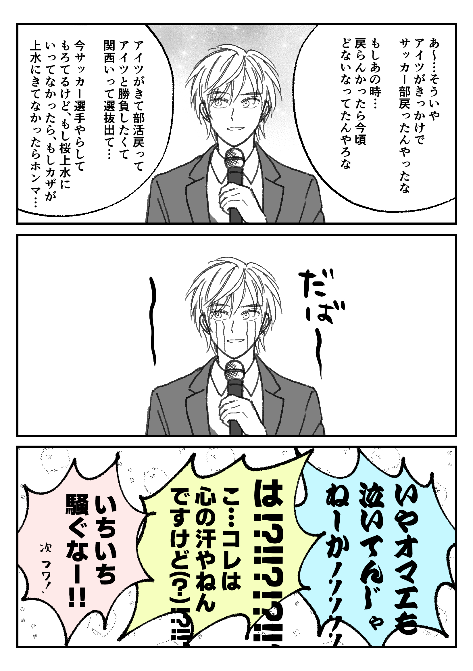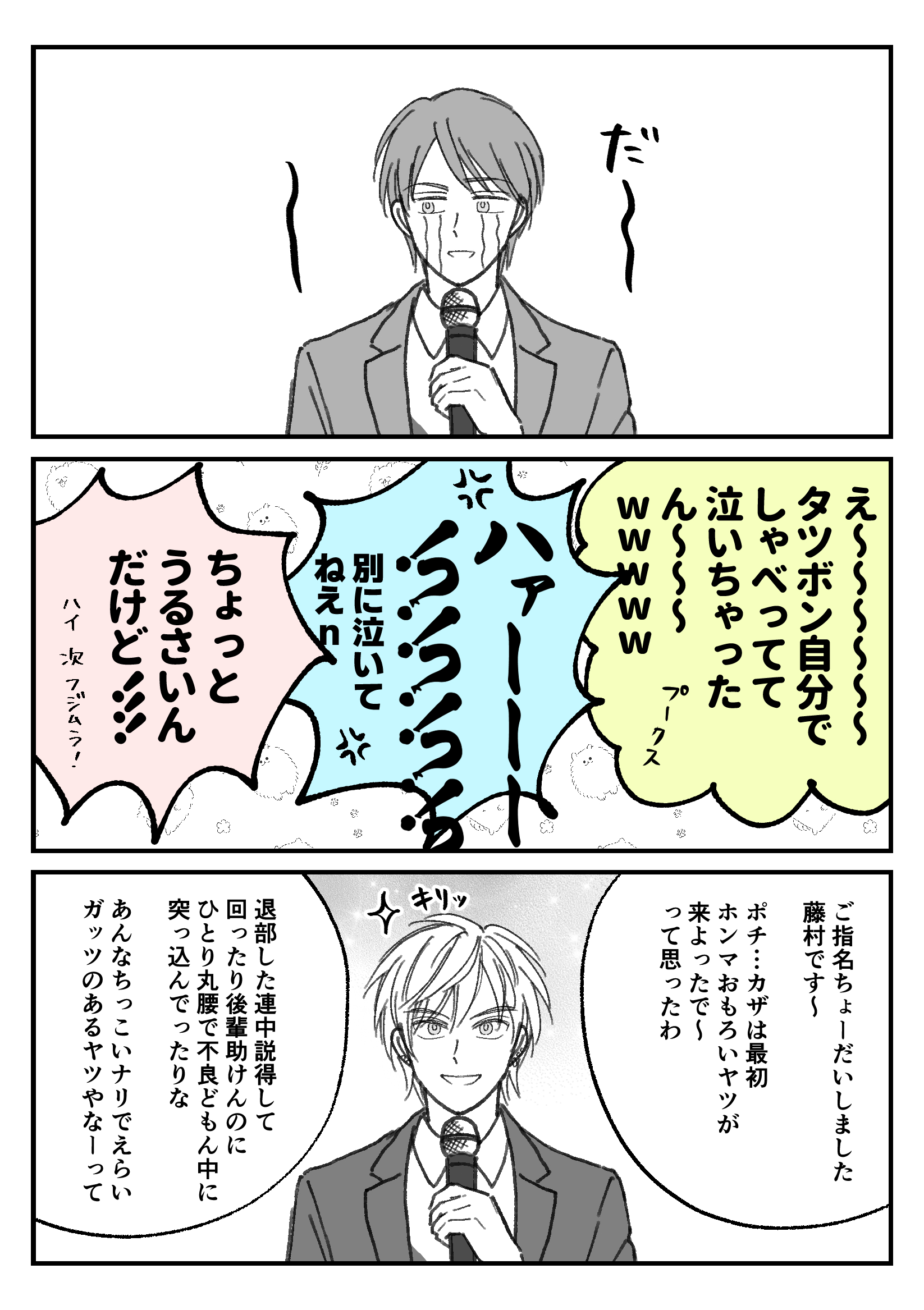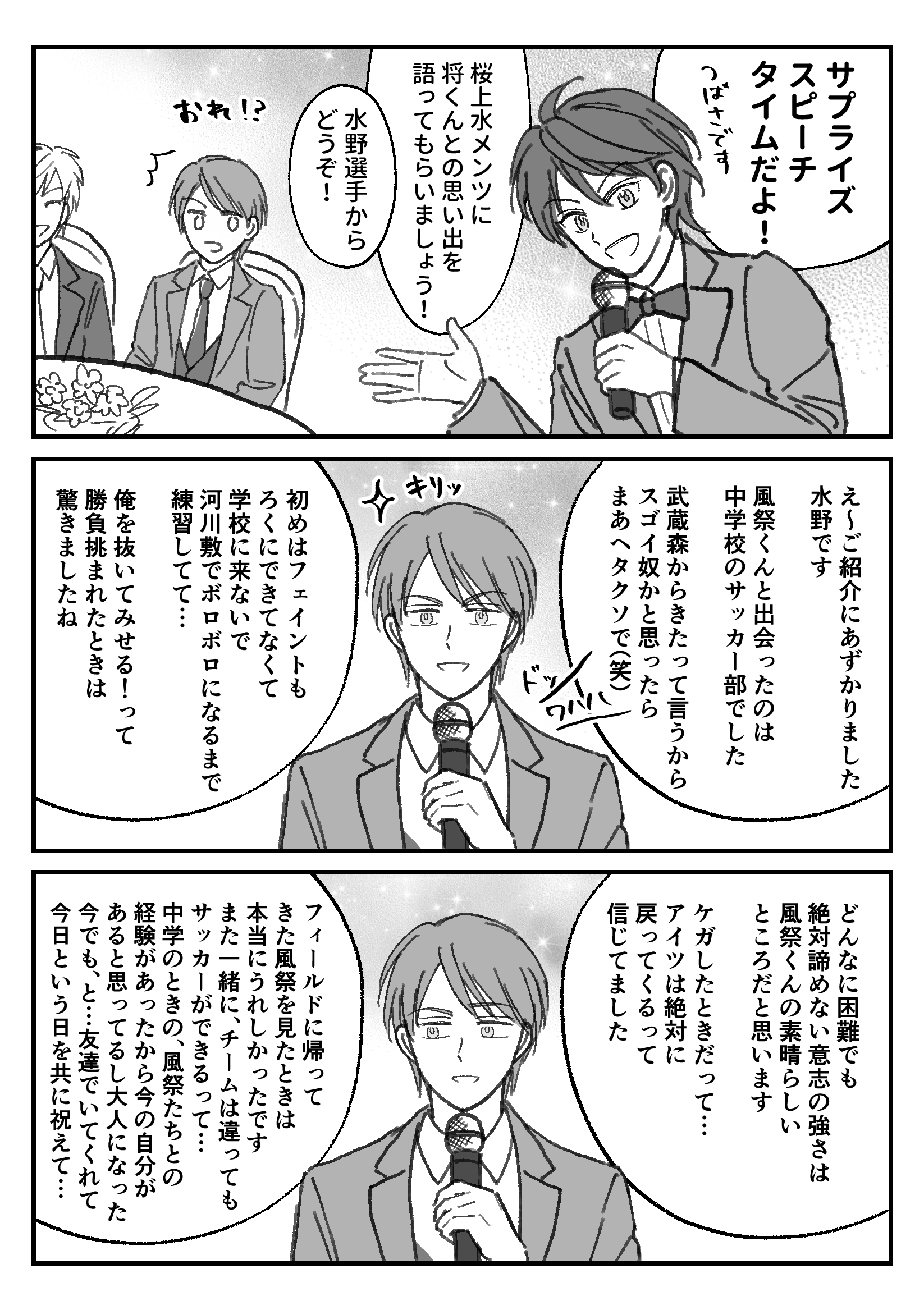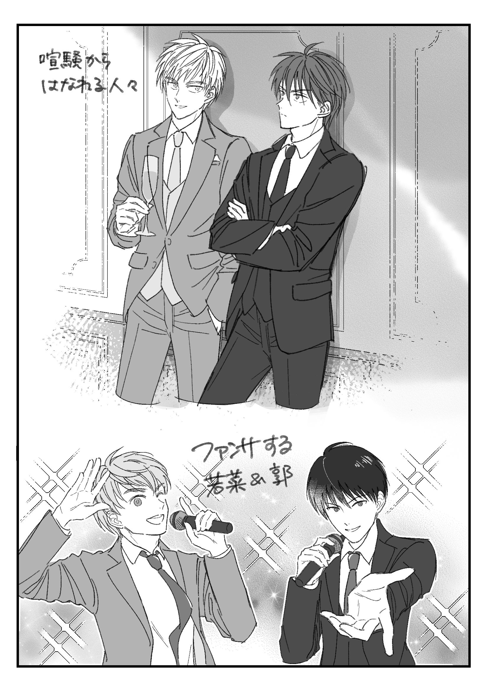 笛ぷちで展示したかったマンガ #絵 続きを読む 友人代表スピーチはきっとトモユキがしてくれる たぶん風祭さんの一番の親友はトモユキなんじゃないかな…と勝手に思っている 風祭は普通に友達多そうだしな 天城と不破くんのコンビ超好き〜〜〜!!!!! わりと本編でも一緒のコマにいるしサムライ〜では2人で呑んでたし結構仲がいいんじゃないのー!? 大人数の集まりのときは輪からフラっと外れてそうな2人 不破くんが学会でドイツに行くとき天城に連絡してほしい 2人ドイツの街並みを並んで歩いてるところ見た過ぎ 絶対かっこいい 功兄このとき金髪じゃないと思うけど役作りで金髪にしてるということでよろ… 若菜はパーティーで盛り上げるタイプだと思うけど郭はシラフではやってくれないだろうな 金を払えばサービスしてくれるかもしれない ビジネスとして というか笛ぷちもう2カ月前の話なんですが 今更すぎてうけますね 笛ぷちさんは本当にありがたい企画だったよ〜〜〜大感謝 まあピクスクはいろいろあったけど… でもまたwebオンリー的なのあったら出たいな〜今度はちゃんと何かを置く決意 畳む 2023/09/26(Tue) 23:52:10 笛
